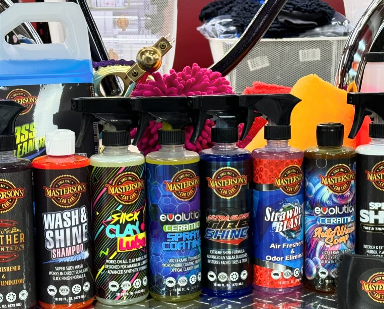 En Mastersons, ofrecemos una exclusiva línea de productos automotrices para detallado y cuidado del vehículo. Desde ceras, limpiadores y abrillantadores hasta productos especializados para restaurar la pintura y proteger tu auto, cada producto está formulado con ingredientes de alta calidad para asegurar un acabado profesional.